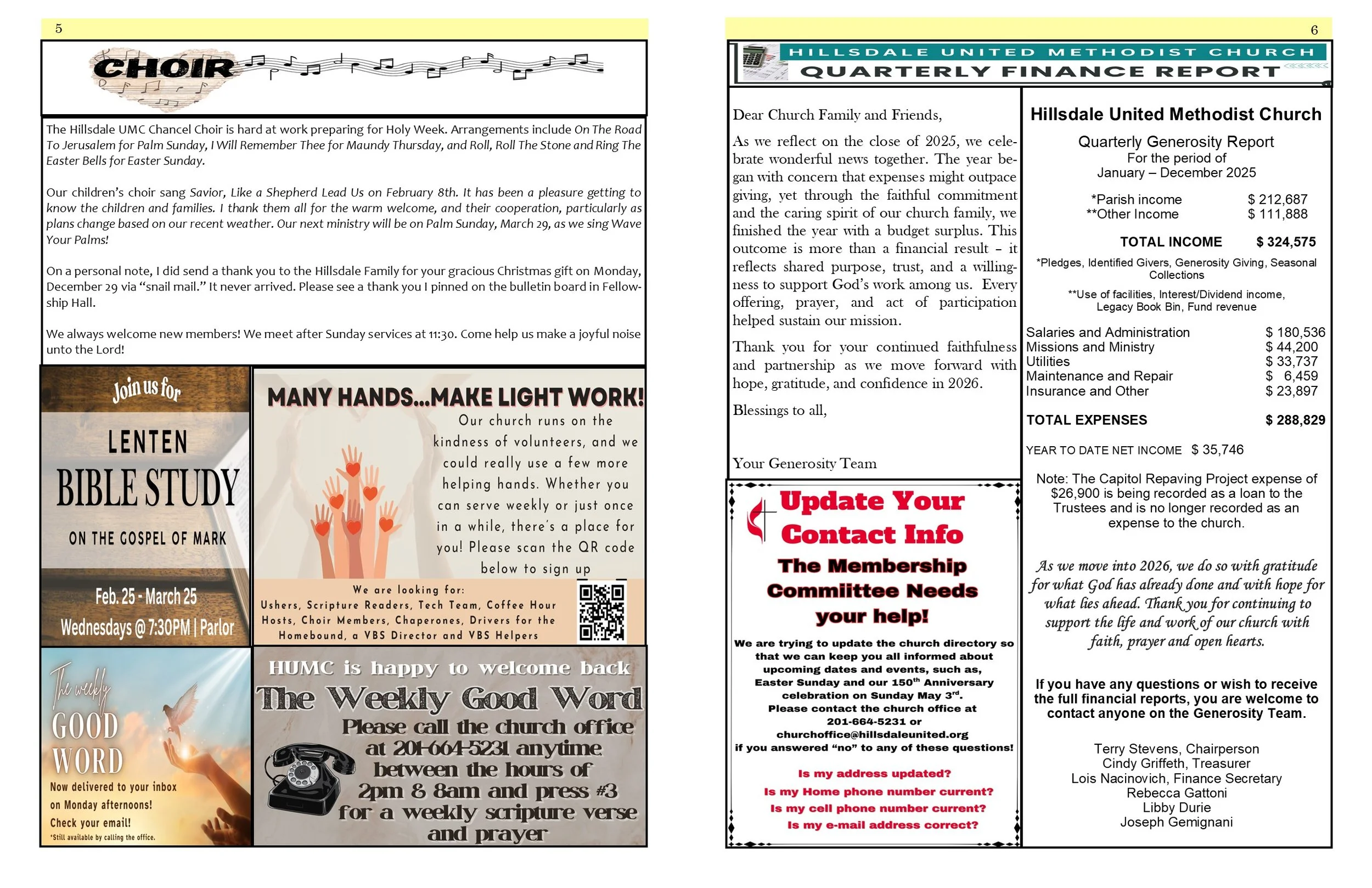 “The Open Door” is well-read and anticipated by our Congregation, and has been a vital tool in helping our Congregation better understand the church ministries and activities. And it has been an excellent way for persons who love our church but have moved away, to stay informed and in touch.